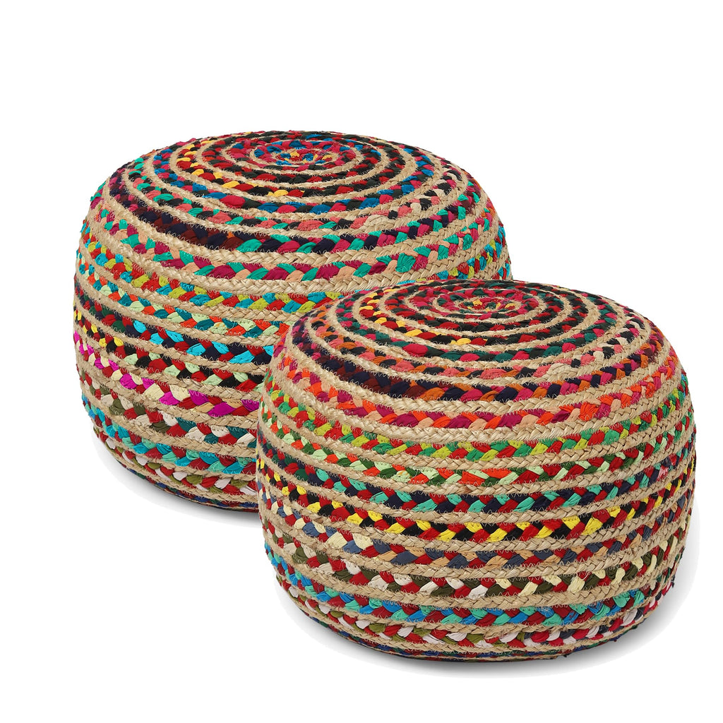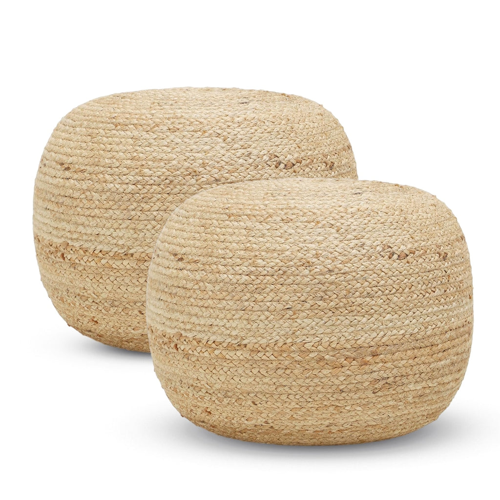 Our jute poufs bring organic texture and earthy warmth to any room. Each piece is hand-braided from natural jute fibers, creating a durable ottoman that works as a footrest, extra seating, or textured accent piece.